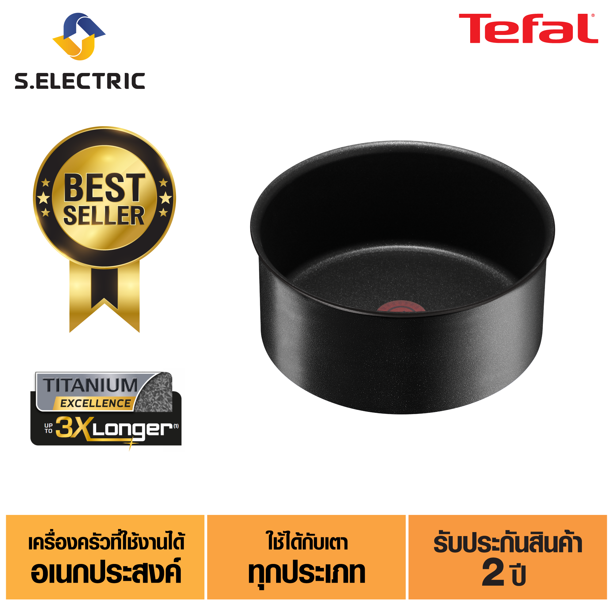 - ผิวเคลือบ Titanium Excellence ผิวเคลือบที่ดีที่สุดของทีฟาล์ว ลื่นไม่ติดกระทะ ไม่หลุดลอกง่าย ทนทุกการใช้งาน